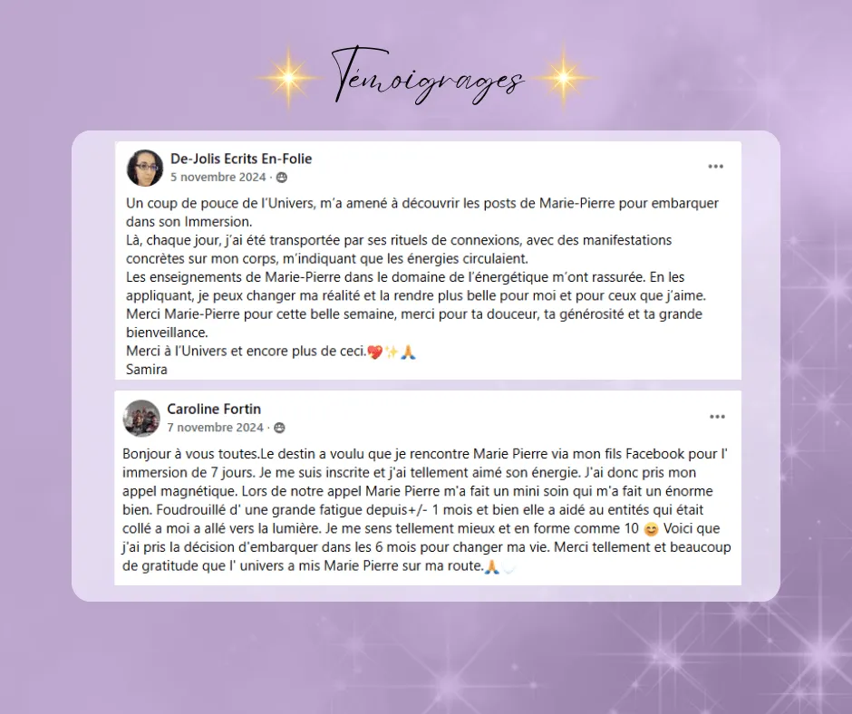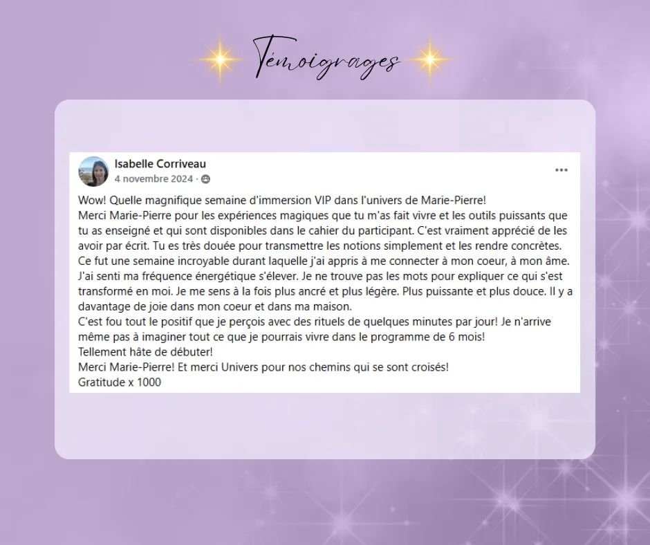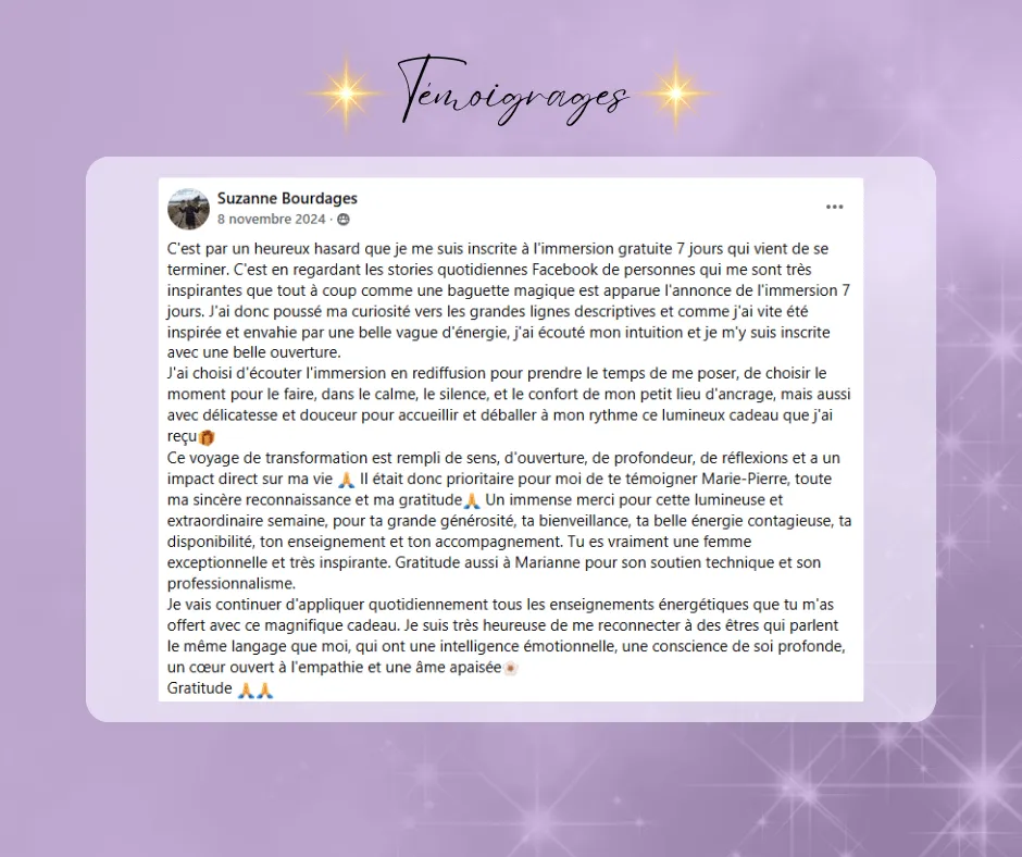 Rejoins l'immersion GRATUITE du 12 au 18 novembre - MIDI (heure du Québec) pour connecter à ta puissance intérieure et reprendre le pouvoir sur ta vie !